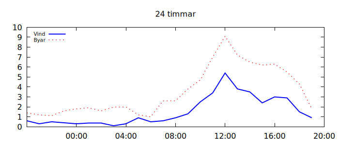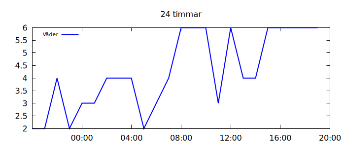 | Tid | Väder | Temp | Nederbörd mm | Vind m/s | Fukt % | Tryck hPa | Sikt km |